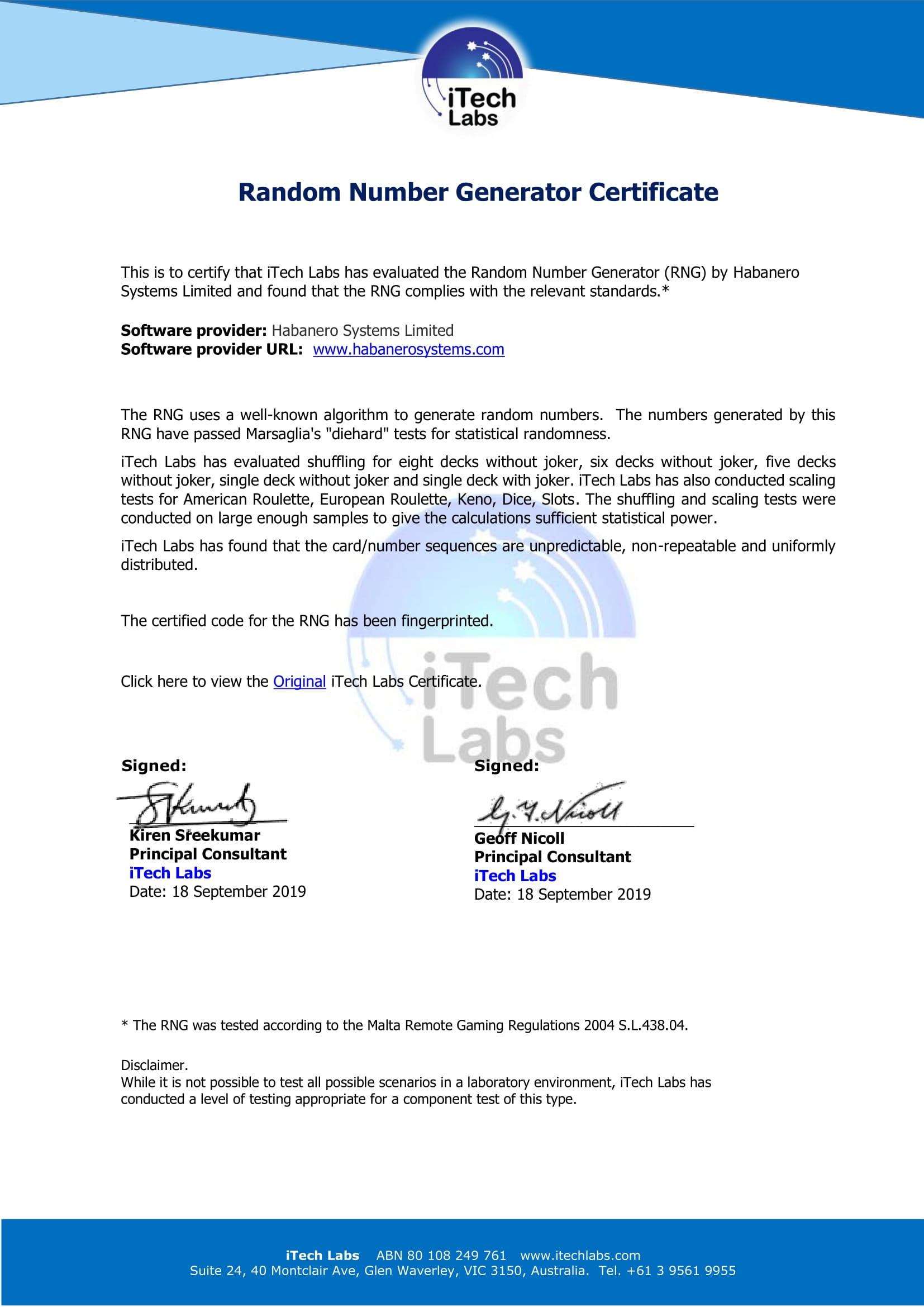 We guarantee fair gaming and 100% random results. Our games use RNGs, are not manipulated and are tested by Independent Auditors to ensure accuracy and fair play. RNG’s or Random Number Generators are programs set on all of our Casino games, reinforcing the fact that all results remain random. These games are unable to be predicted or manipulated no matter what. In accordance with our licensing agreement, our RNG games are 100% fair and in compliance with industry standards.
